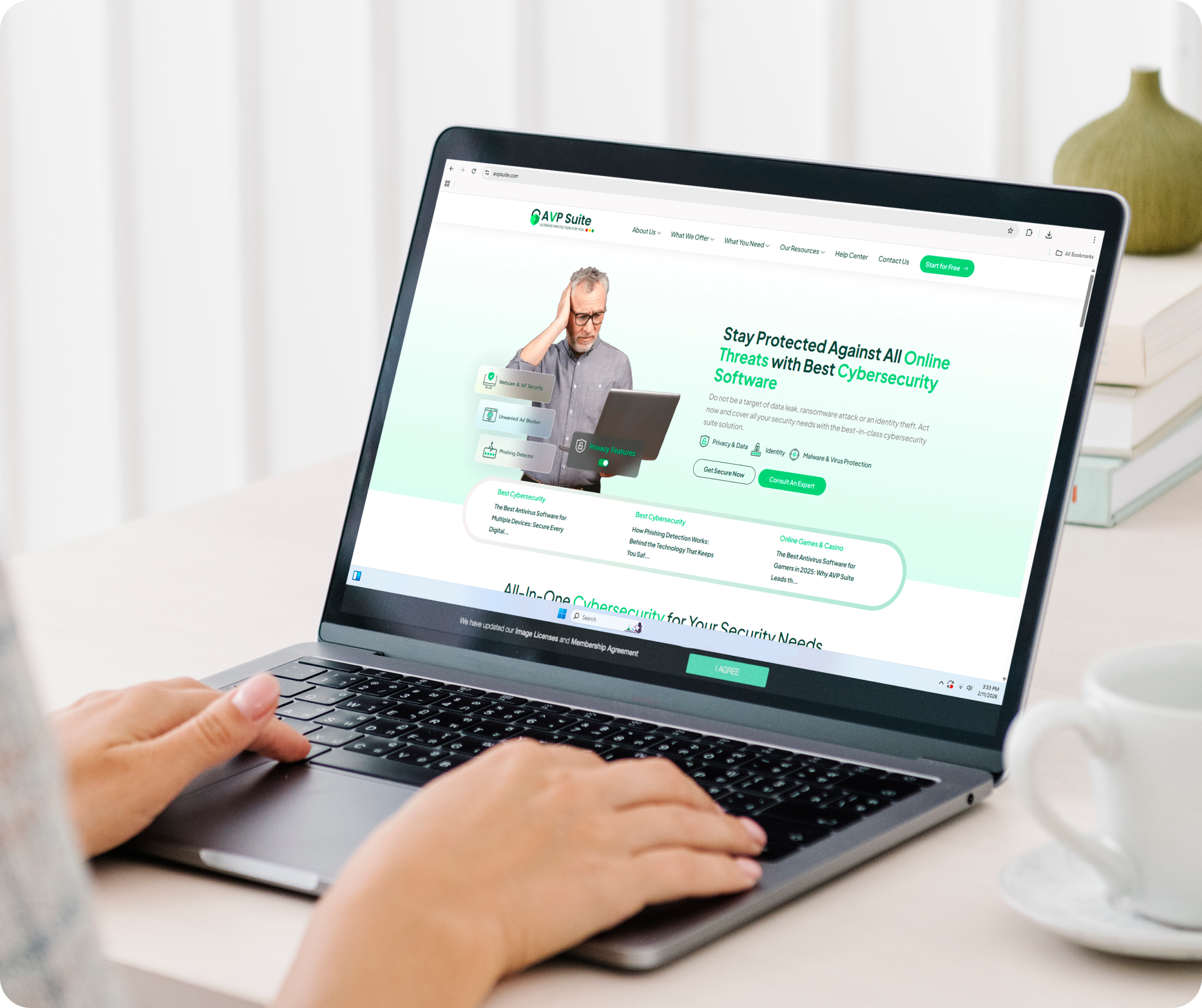 While antivirus software helps with virus and malware protection, it’s limited. With the rise in cyberattacks, you’re still at risk since it doesn’t protect your identity, privacy, or guard against online tracking. Don’t wait—act now and upgrade to full cybersecurity before you become the next victim.